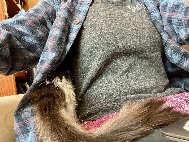Yeti crawling into Elle's shirt